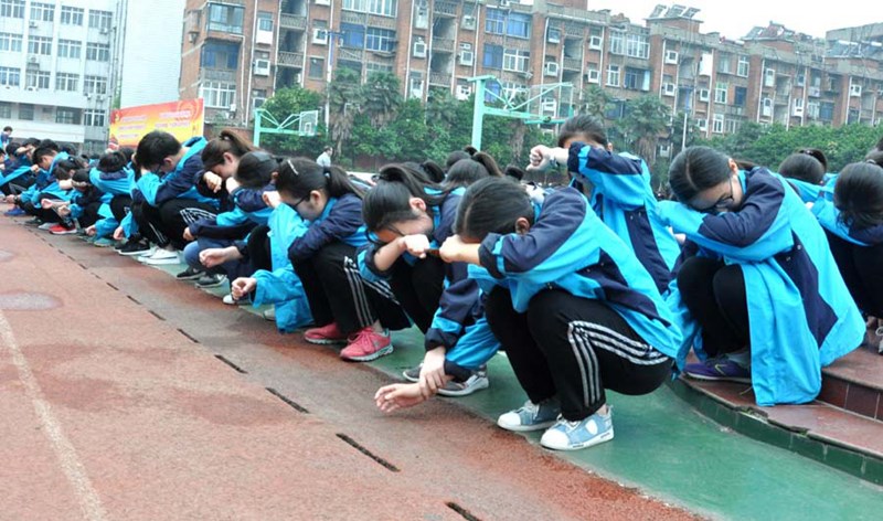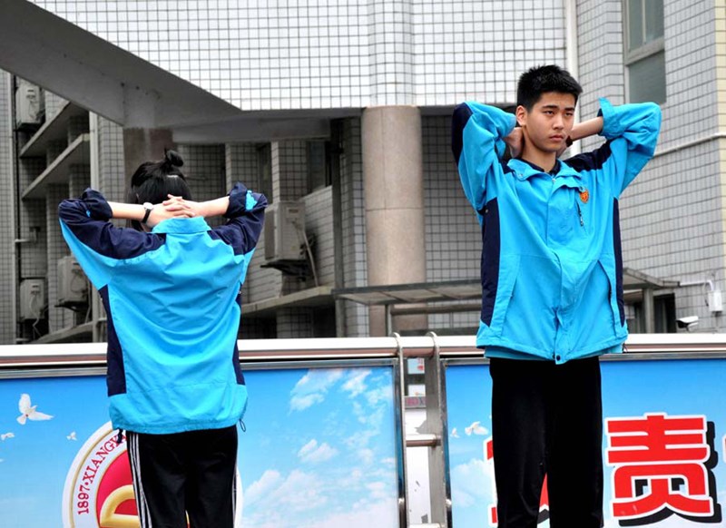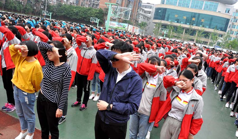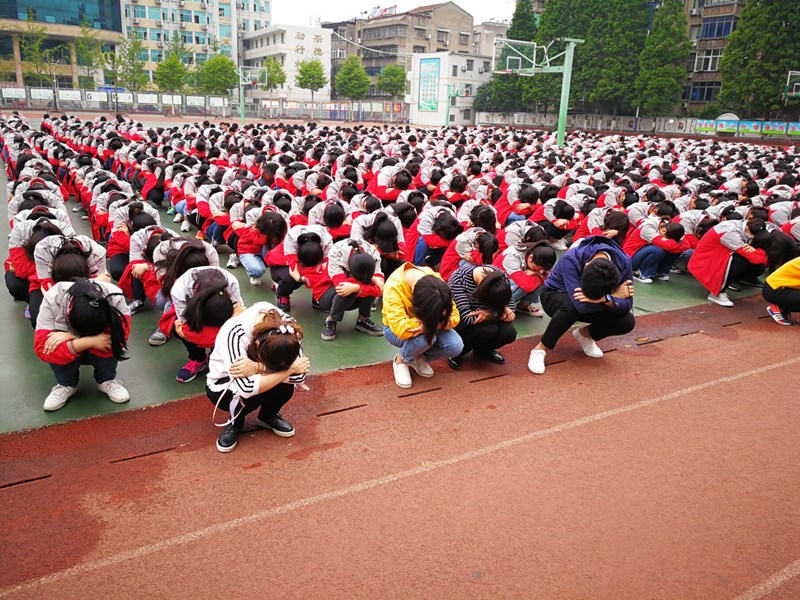 師生一起練習(xí)防災(zāi)減災(zāi)知識(shí)