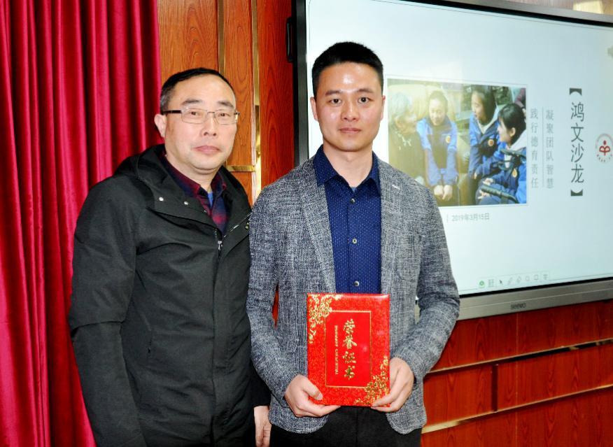黨委書記李大強為宋書帆老師頒發(fā)“優(yōu)秀鴻文講師”證書