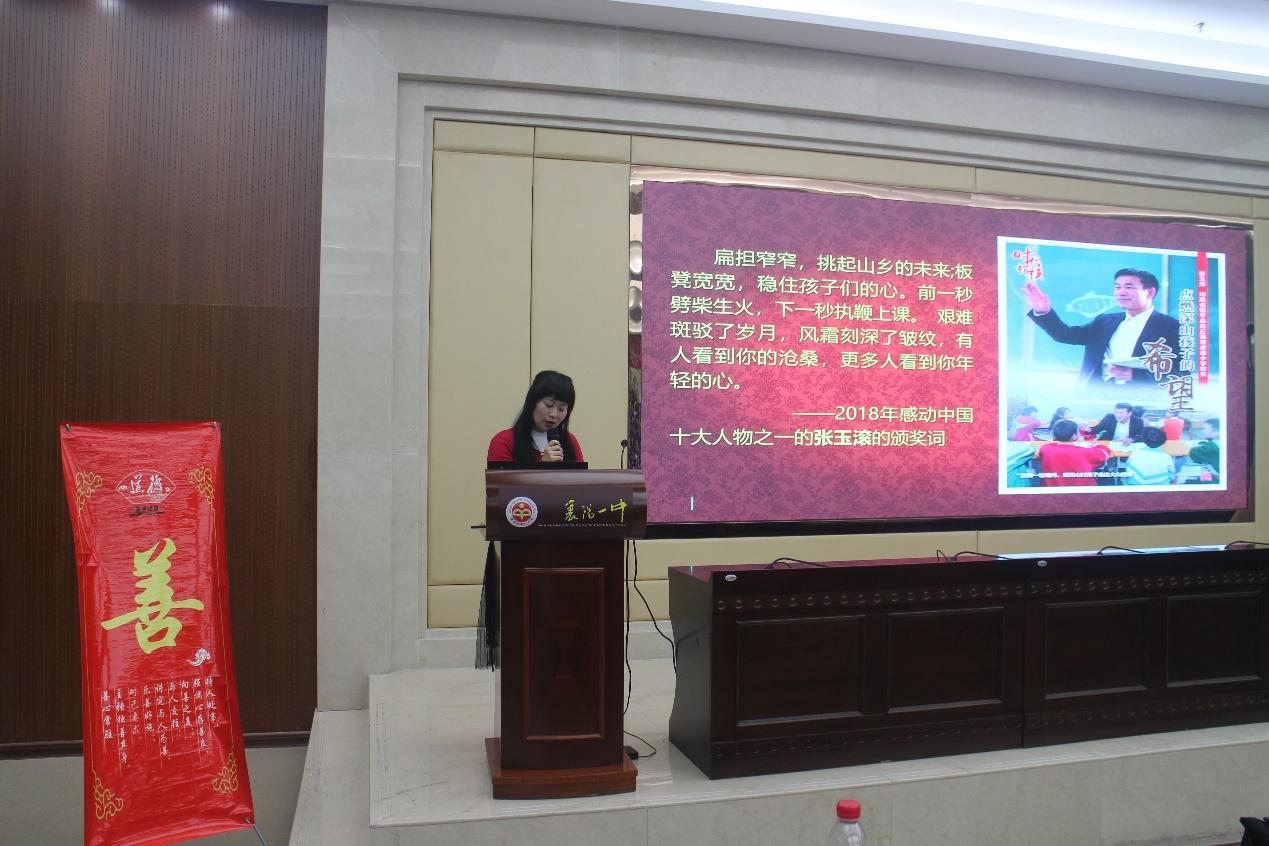 “扁擔(dān)窄窄,挑起山鄉(xiāng)的未來(lái);板凳寬寬,穩(wěn)住孩子們的心……”一句句震撼心靈的話語(yǔ),一幀幀感人至深的畫(huà)面,讓老師與同學(xué)們紅了眼眶。更有襄陽(yáng)一中高級(jí)教師羅柳深情地為大家解讀了張老師的先進(jìn)事跡,一點(diǎn)一滴道盡了一名教師的拳拳愛(ài)心與巍巍責(zé)任。他做一方守望人,快樂(lè)前行,更是一位筑夢(mèng)匠,薪火相傳。