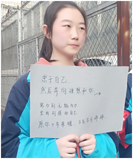 值周結(jié)束后,程雯婧同學(xué)在次周的升旗儀式上總結(jié)道:“通過值周,我們明白了勞動的辛苦,更明白了學(xué)習(xí)的重要性。希望在以后的學(xué)習(xí)的道路上,無論再苦再累都要堅持下去。在最美的年齡,為最純的夢想,盡最大的努力?!?/span>