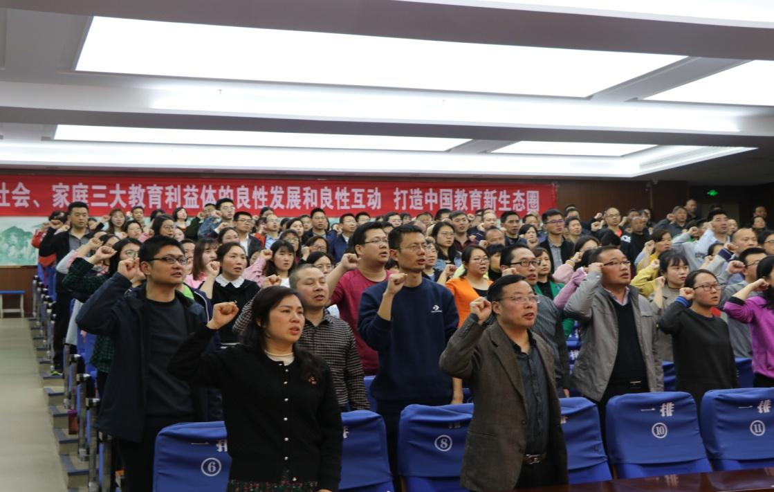 (宋書帆老師帶領(lǐng)全體教職工宣誓)