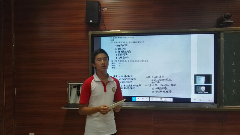 2019年9月6日,周五下午,高一年級A+班和部分A班的組長在潘慧庵一樓錄課室進行了第一次小組長培訓。本次培訓由高一年級劉亦冰老師主講,江濤老師向同學們介紹了本次培訓的內容和意義。高一小組項目組全體成員,高一年級優(yōu)秀小組長參與,參與人數(shù)有98人。