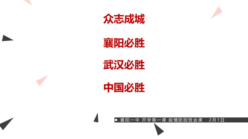 (我們相信,只要大家齊心協(xié)力,眾志成城,此次防疫之戰(zhàn)襄陽必勝,武漢必勝,中國必勝?。?/span>
