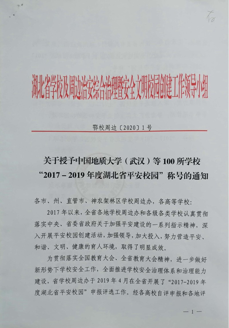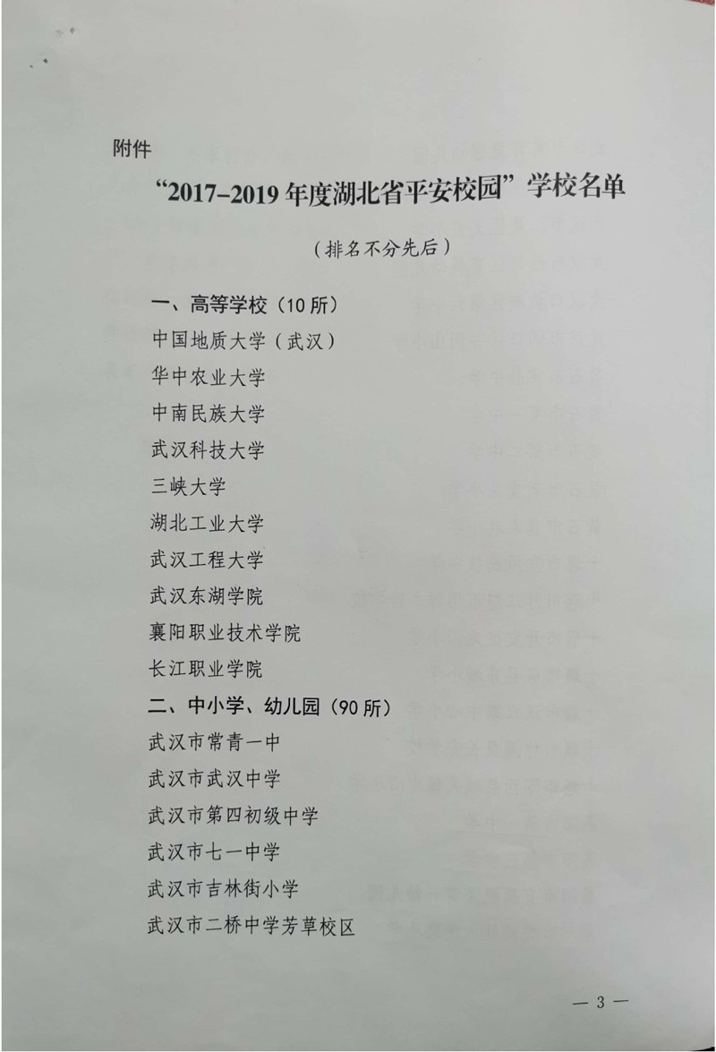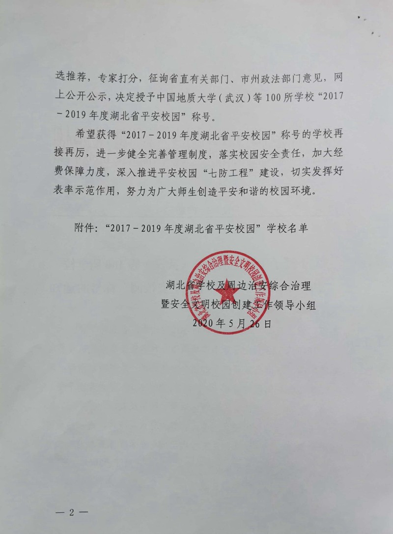 襄陽一中榮獲“2017-2019年度湖北省平安校園”稱號